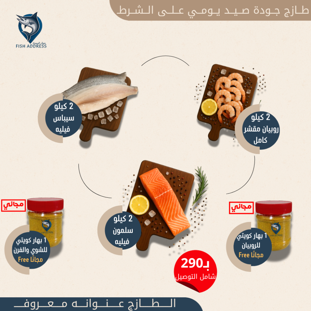 خلي وجبتك غنية بالنكهات مع هذا البوكس المتنوع والمميز! يحتوي على تشكيلة فاخرة من الروبيان المقشر والفيليه الجاهز، مع بهارات كويتية أصلية تضيف طابع شرقي لذيذ.